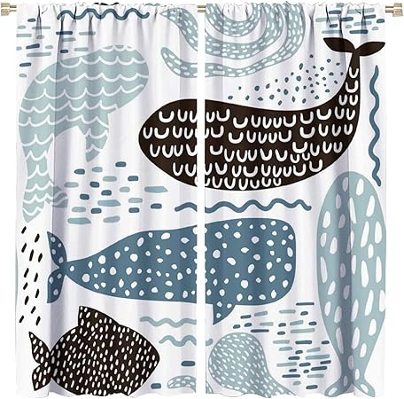 JESTRONRY Cute Whale Kids Curtains, Funny Cartoon Ocean Sea Animals Rod Pocket Window Drapes for Living Room Bedroom Bathroom Home Decor W42xL45in