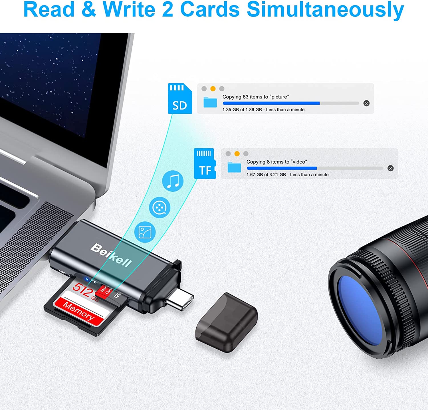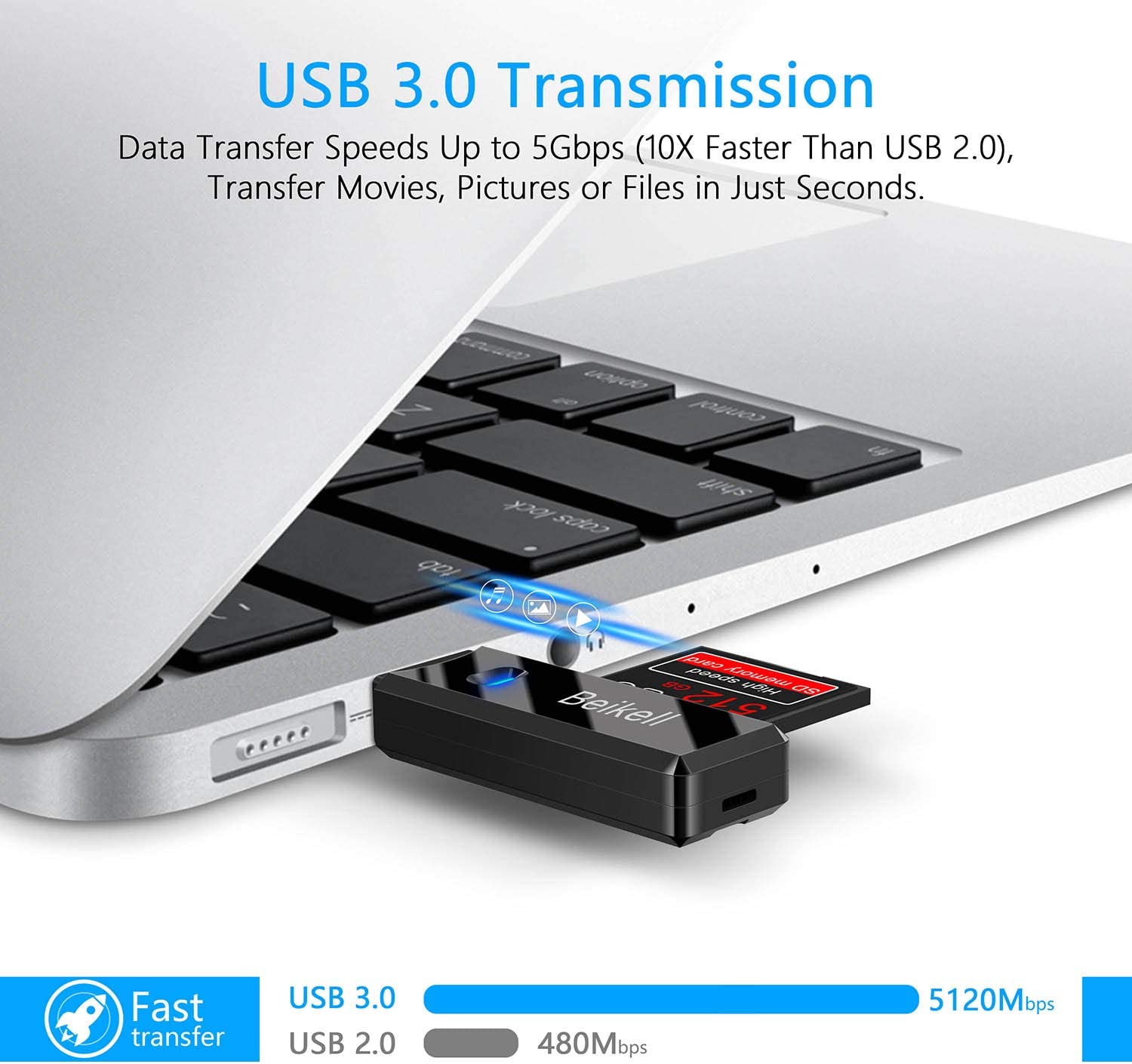 Beikell SD Card Reader, High-Speed USB 3.0 Card Reader Memory Card Adapter-Supports SD/Micro SD/TF/SDHC/SDXC/MMC-Compatible with Windows, OS