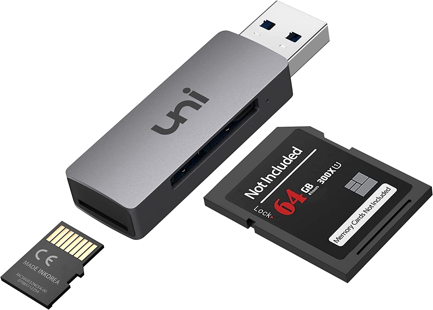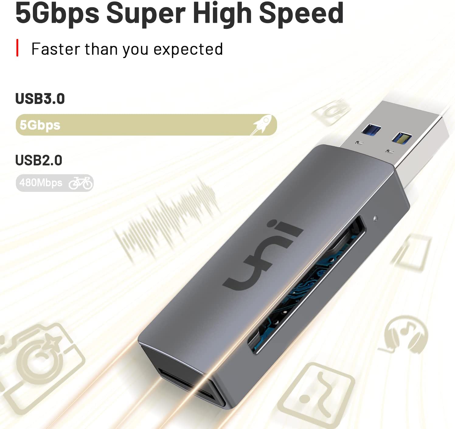 SD Card Reader, uni Micro SD Card Adapter, Mini-Size Aluminum USB 3.0 SD Card Reader Support SD, SDXC, SDHC, MMC, Micro SDXC, Micro SD, Micro SDHC and UHS-I Card, Compatible with Mac/Win/Linux