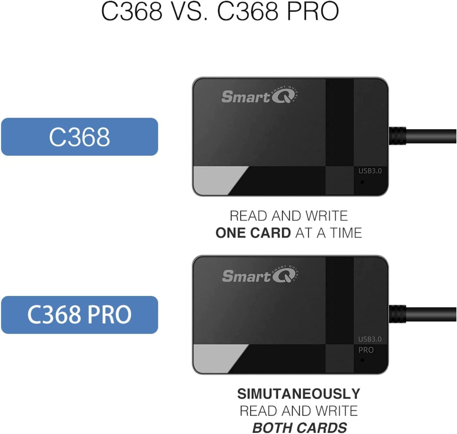 SmartQ C368 USB 3.0 SD Card Reader, Plug N Play, Apple and Windows Compatible, Powered by USB, Supports CF/SD/SDHC/SCXC/MMC/MMC Micro, etc.