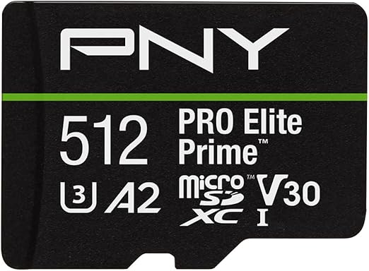 PNY 512GB PRO Elite Prime‰ã¢ C10 U3 V30 A2 microSDXC Flash Memory Card ‰ÛÒ Ultra-Fast Speeds, Read 200MB/s, Write 150MB/s, 4K UHD, Full HD, UHS-I, for Smartphones, Drones, Action Cameras
