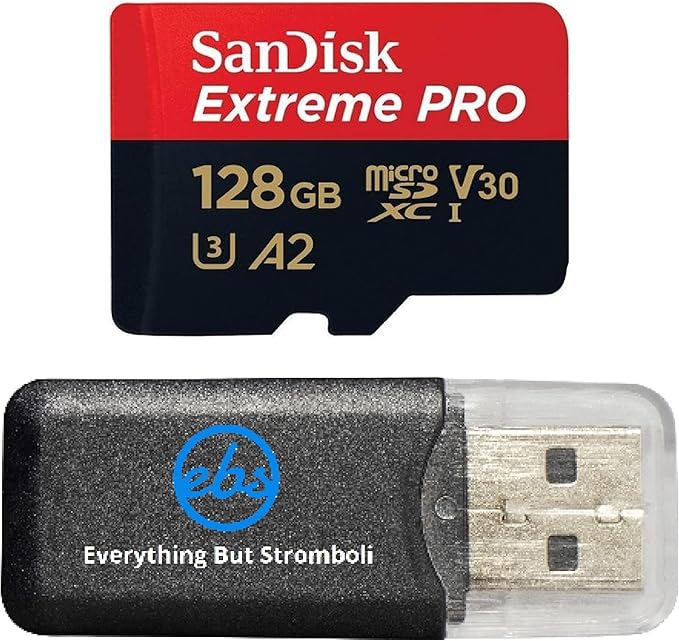 SanDisk MicroSDXC 128GB Extreme Pro Memory Card Compatible with DJI Mavic 3 Classic, Action 5 Pro, Mavic Pro Platinum (SDSQXCD-128G-GN6MA) Bundle with (1) Everything But Stromboli MicroSD Card Reader