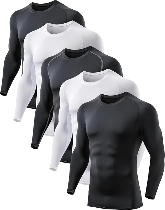 5 or 4 Pack Men's Compression Shirts Long Sleeve UPF SPF Rash Guard Workout Base Layer Undershirt Gear