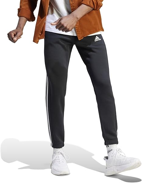 adidas Men's Essentials Fleece Tapered Cuffed 3-Stripes Pants, Black, X-Large