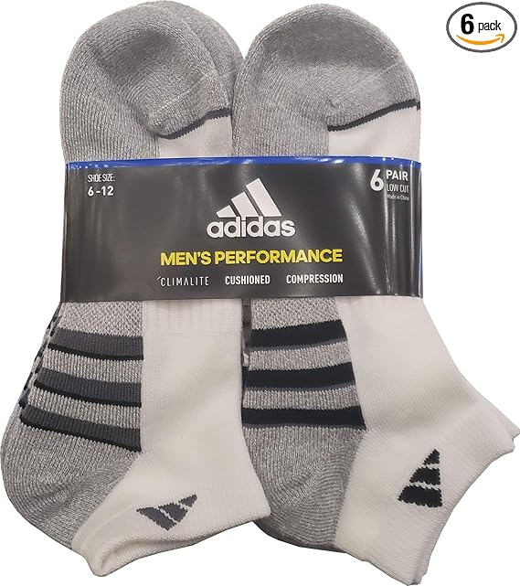 Adidas Men's Low Cut Sock (6 Pair), 6Count, Fits Shoe Size 6-12, White