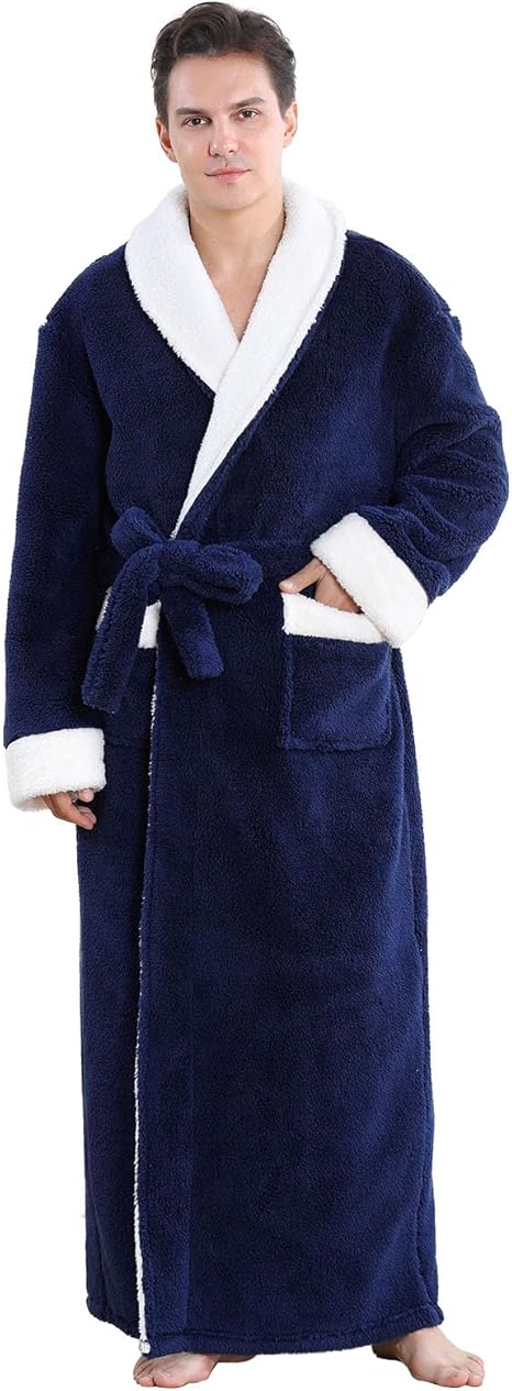 Artfasion Mens Robes Plush Bathrobe: Ultra Soft Flannel Spa Bathrobe, Long Plush V-Neck Robe House Coat with Belt & 2 Pockets