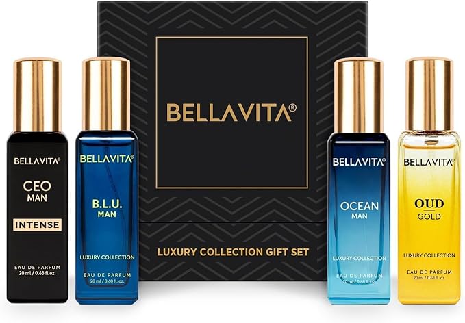 Be'lla Vita Luxury Collection Eau De Parfum Gift Set 4 x 20ml for Men with OUD GOLD, OCEAN, B.L.U & CEO Man Perfume|Long Lasting EDP Fragrance Scent