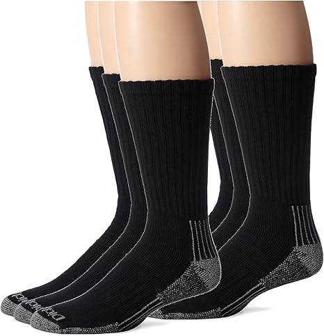 Dickies Men's 6 Pack Heavyweight Cushion Compression Work Crew Socks, Black (6 Pairs), Large