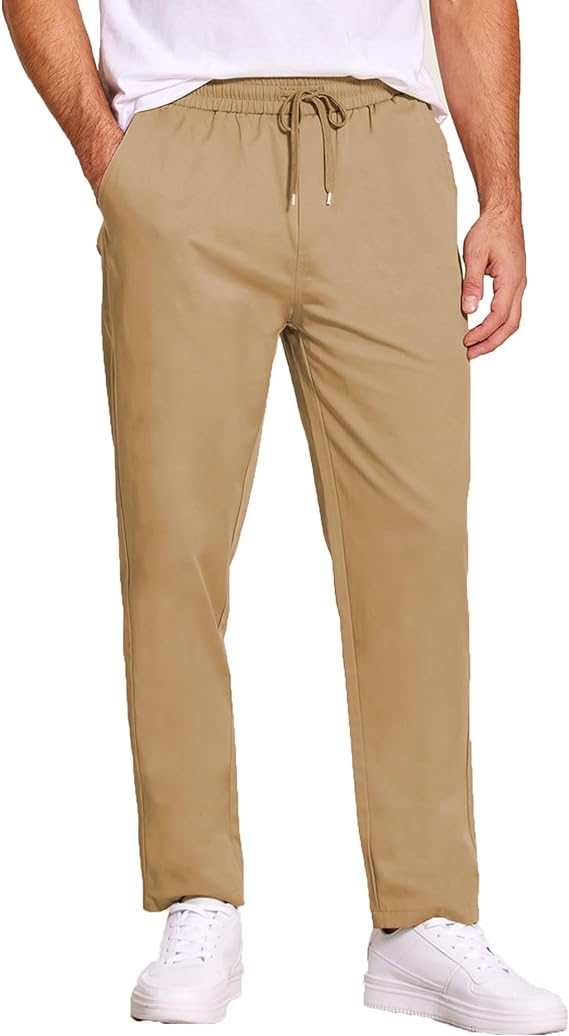 COOFANDY Men's Casual Cotton Pants Regular Fit Elastic Waist Drawstring Twill Pants Straight Leg Chino Pants