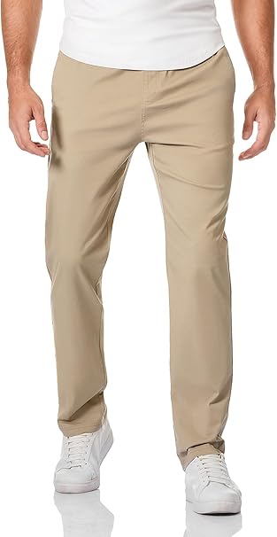 JMIERR Men's Casual Pants Cotton Twill Drawstring Elastic Waist Tapered Chino Pants with Printed Pockets