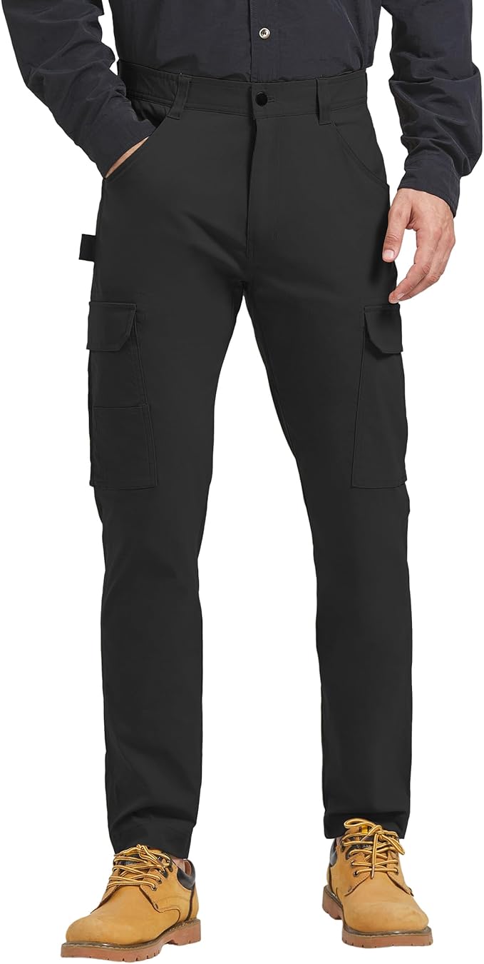 PULI Men's Carpenter Work Pants Cargo Hiking Pants Slim Fit Stretch Waterproof Outdoor Trousers with Pockets