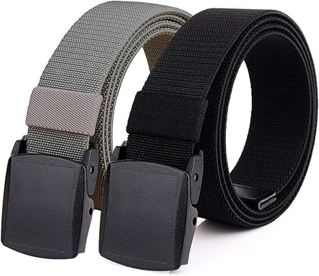 2-Pack Elastic Stretch Belt, Men___s All Size No Metal Nylon Tactical Hiking Belt