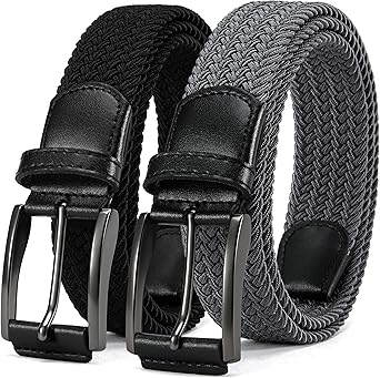 CHAOREN Golf Belts for Men 2Pack - Stretch Braided Woven Belt Elastic Web for Casual Golf Jeans Pants Polo, 1 3/8"___