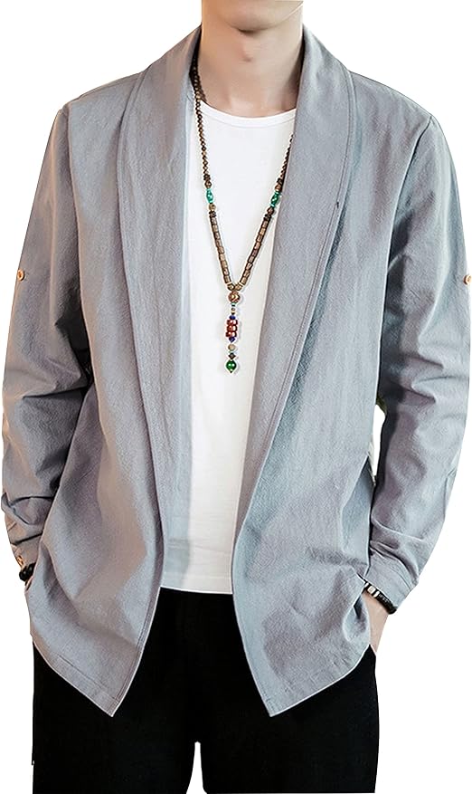 Mingzhu Mens Cotton Linen Blazer Jacket Roll Up Long Sleeve Notched Lapel Sport Coat