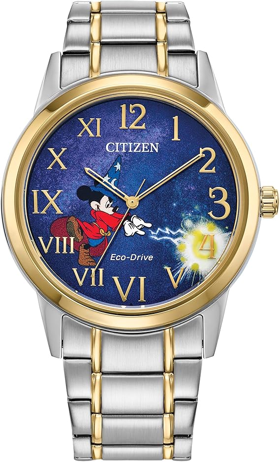 Citizen Eco-Drive Disney Sorcerer_ã_s Apprentice Mickey Two Tone Stainless Steel Watch, 3 Hand, Luminous, 40mm (Model: FE7064-71W)