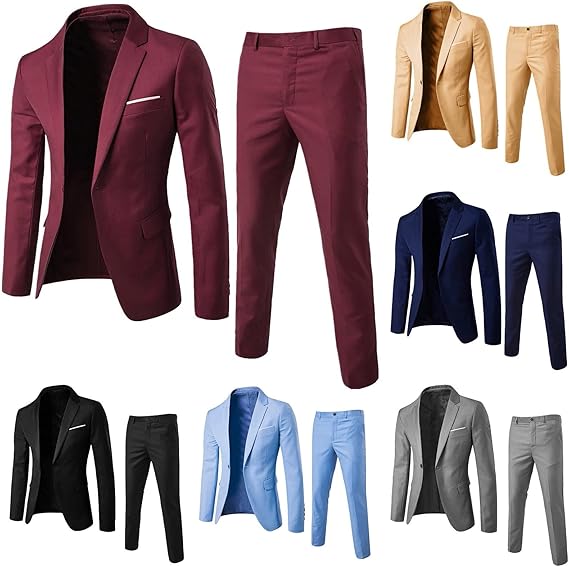 Men's 2 Piece Slim Fit Suit One Button Jacket Blazer Pants Suit Dress Business Wedding Party Sport Coat Pants Set