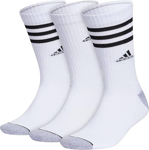adidas Men's 3-Stripe Crew Socks with Arch Compression for a Secure Fit (3-Pair)