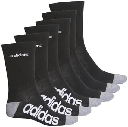adidas Superlite Linear Logo Socks - 6-Pack, Crew (for Men) - BLACK/WHITE/GREY (L)