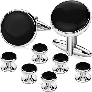 AMITER Men_ã_s Cufflinks and Tuxedo Studs Set, Suitable for Black Suit White Shirts on Wedding, Anniversary, Birthday