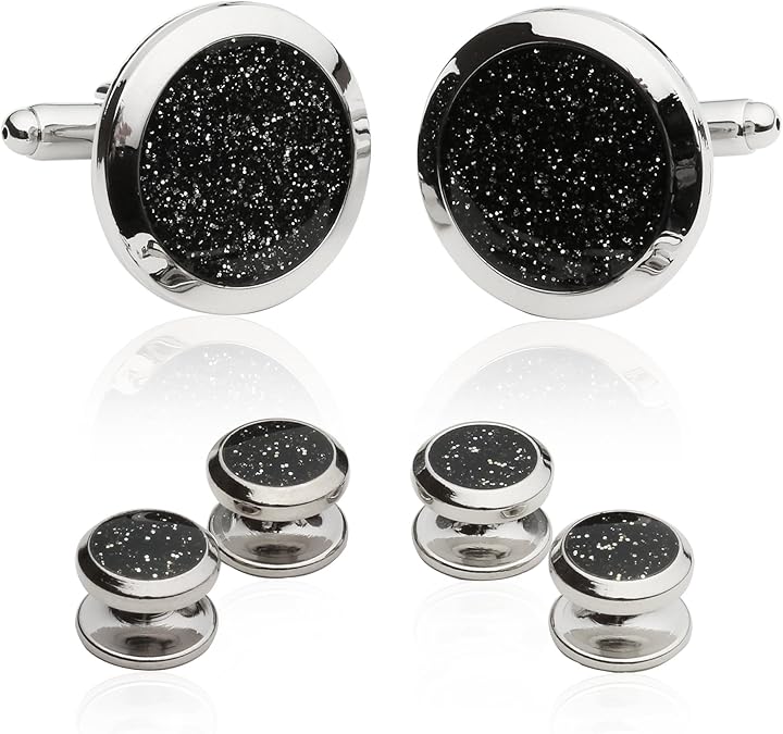 Cuff-Daddy Men's Black Diamond Dust Tuxedo Cuff Links and Studs Set with Presentation Jewelry Idea Box - 7/8" cufflinks, 3/8" studs - Business Attire Cufflinks & Shirt Accessories Special