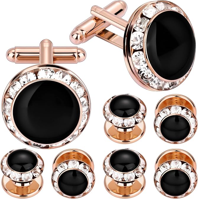 HAWSON Crystal Cuff Links and Studs Set for Mens Tuxedo Shrit Wedding Accessories