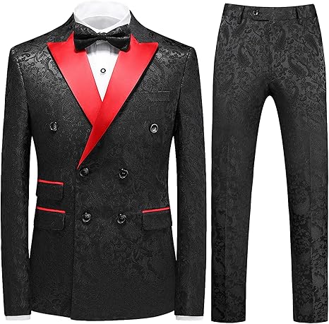 UNINUKOO Men's Tuxedos 3 Piece Double Breasted Suit Men Floral Dress Wedding Business Formal Wear