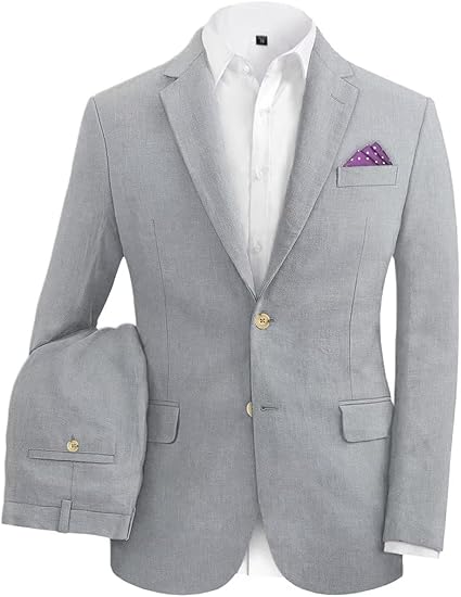 Wangyue Linen Suits for Men Slim Fit 2 Piece Suits Summer Beach Linen Wedding Suits for Man