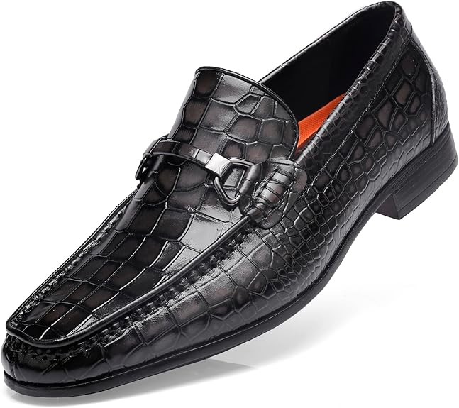 Formal Dress Shoes for Mens, Premium Crocodile Printed Mens Leather Slip on Dress Shoes, Party Wedding Shoes Bit Loafer