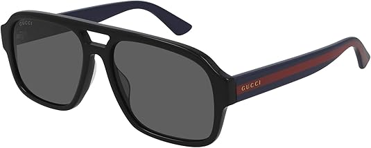 Gucci GG 0925S 001 Black Blue Plastic Aviator Sunglasses Grey Lens