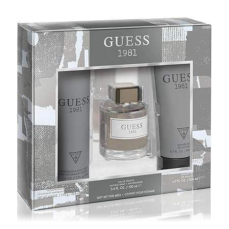 GUESS 1981 Men/Homme Eau de Toilette 3 Piece Gift Set - Cologne Spray 3.4 Fl. Oz., Deodorizing Body Spray 6.0 Oz., & Shower Gel 6.7 Fl. Oz.