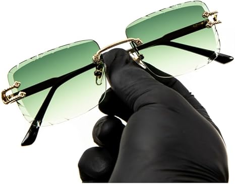 Stylish Luxury Green Tint Gem Cut Lens Unisex Square Rimless Retro 90's Hip Hop Gold Wire Frame Sun Glasses Frameless Rectangle Summer Shades Sunglasses For Men And Women