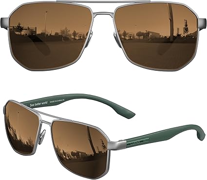 LUENX Aviator Sunglasses for Men Driving Square Polarized Polygon Lens - (Brown Lens)
