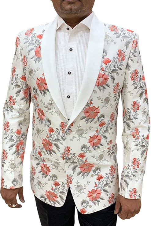 Mens Shawl Collar Embroidered White Blazer Sport Jacket Coat SBM1060XL52 52 X-Long White