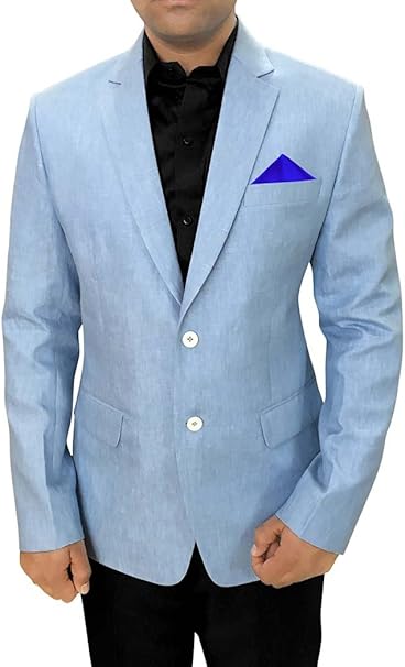 Mens Sky Blue Linen Blazer Sport Coat Jacket SB88XL46 46 X-Long Sky Blue