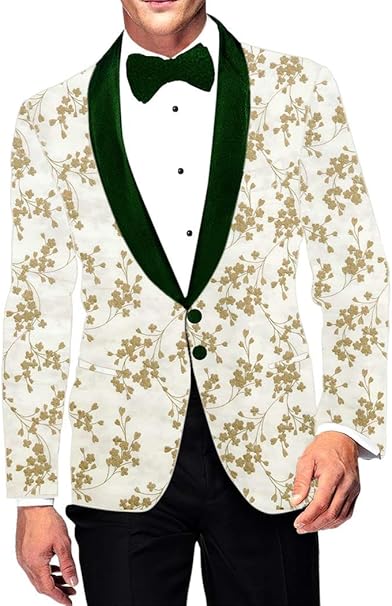 Embroidered Slim fit White Shawl Collar Sport Jacket Coat Blazer SBM1062