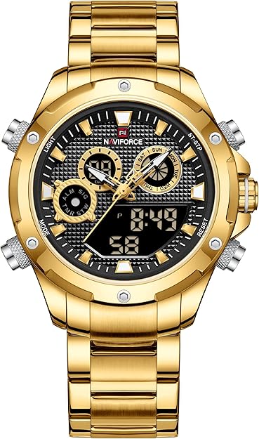 NAVIFORCE Analog-Digital Watch for Men Quartz Watches Multifunctional Business Full Stainless Steel Wristwatches
