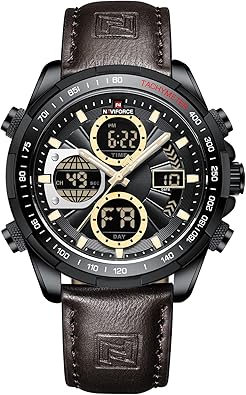 NAVIFORCE Digital Watch Men Luxury Leather Analog Quartz Waterproof Watches Fashion Business Chronograph Military Multifunctional Wristwatch (Black)