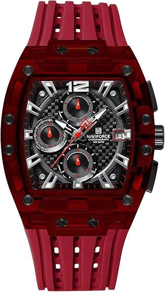 NAVIFORCE Men's Watch Fashion Sport Rectangle Wrist Watches (Chronograph/Waterproof/Luminous/Calendar) Silicon Strap Quartz Watch for Men