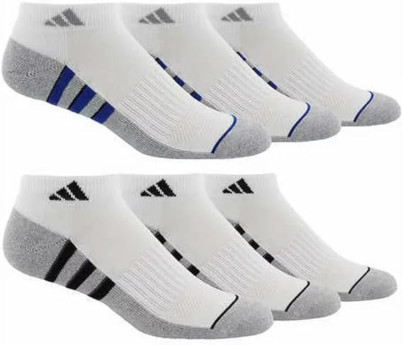 adidas 2 Pack Performance Aeroready Cushioned Low Cut Socks for Men and Women, Men's Shoe Size 6-12, White - Gray with Blue/Black Stripes (12 pairs Total)