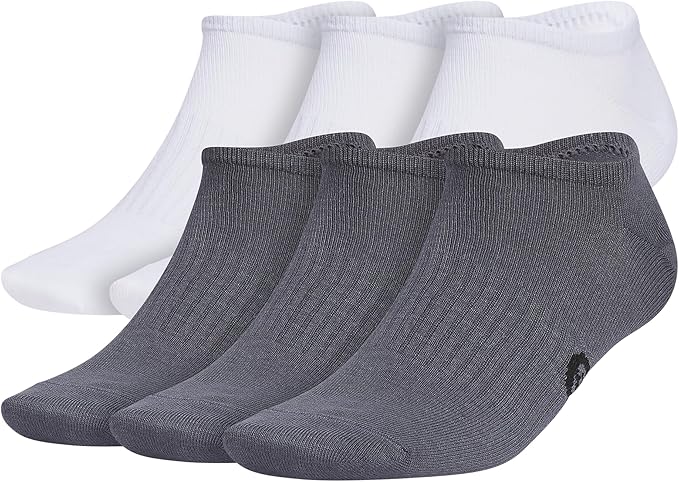 adidas Men's Superlite Classic No Show Socks Low-Profile fit, Arch-Compression and Lightweight Breathable Construction (6-Pair), White/Black/Onix Grey, Large