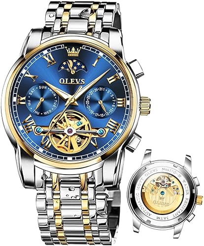 OLEVS Automatic Mechanical Watches for Men Self Winding Waterproof Stainless Steel Men's Wrist Watches Luxury Expensive Watch, Adjustable Bracelet (Gift Tool)