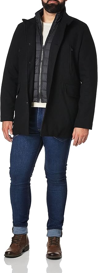 Cole Haan Signature Men's Wool Top Coat with Set in Bib, black, X-Large