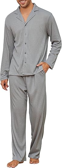 Andeip Men's Pajama Set Waffle Knit Lounge Pjs Set Long Sleeve Top and Pants Sleepwear 2 Piece Button Down Loungewear