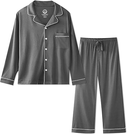 BAMBOO COOL Mens Pajama Set Classic Button Down Sleepwear Soft Long Sleeve Pajamas for Men Lounge Pj Sets with Pockets 2Pcs