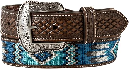 ARIAT Men's Genuine Leather Belt with Southwestern Embroidered Pattern and Removable Buckle
