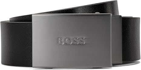BOSS Men's Jion Black Leather Silver Buckle Adjustable Belt