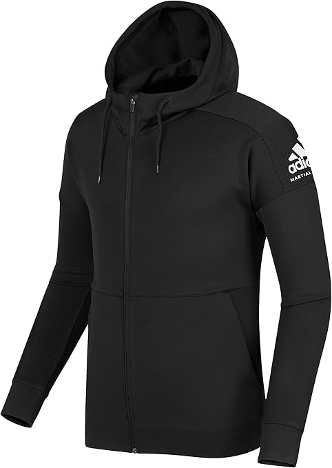 adidas Martial Arts Full Zipped Hooded Fleece Lined Sweatshirt Jacket - Black White - Large