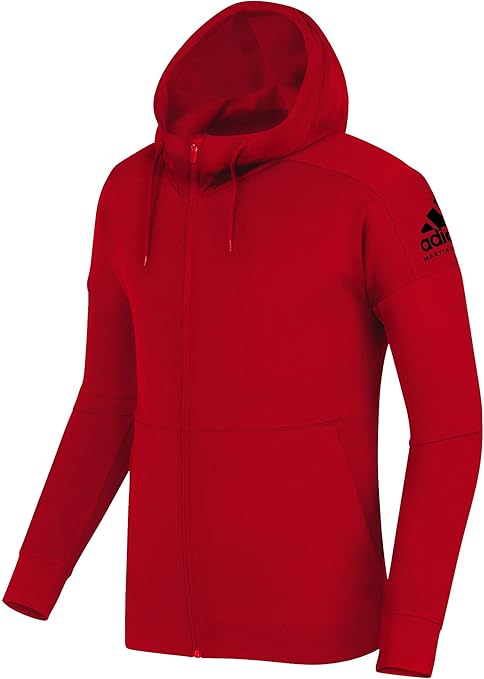 adidas Martial Arts Full Zipped Hooded Fleece Lined Sweatshirt Jacket - Red Black - Medium