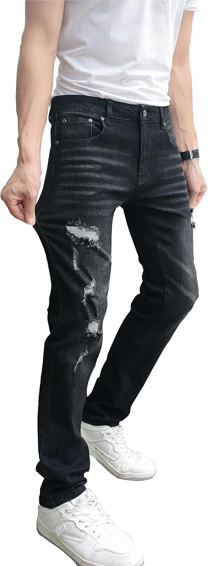 CICOS Mens Jeans Slim Fit Stretch Ripped Jeans for Men Relaxed fit Distressed Straight Leg Fashion Cotton Comfort Flex Pants