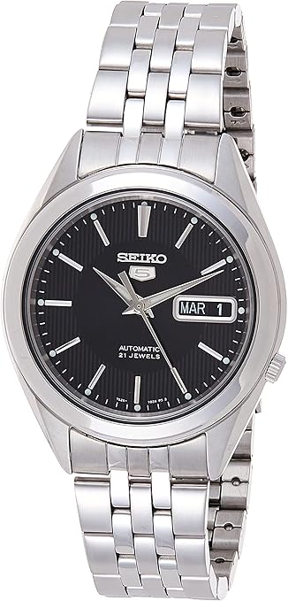 SEIKO SNKL23 Automatic Watch for Men 5-7S Collection - Striking Black Dial with Day/Date Calendar, Luminous Hands, Stainless Steel Case & Bracelet